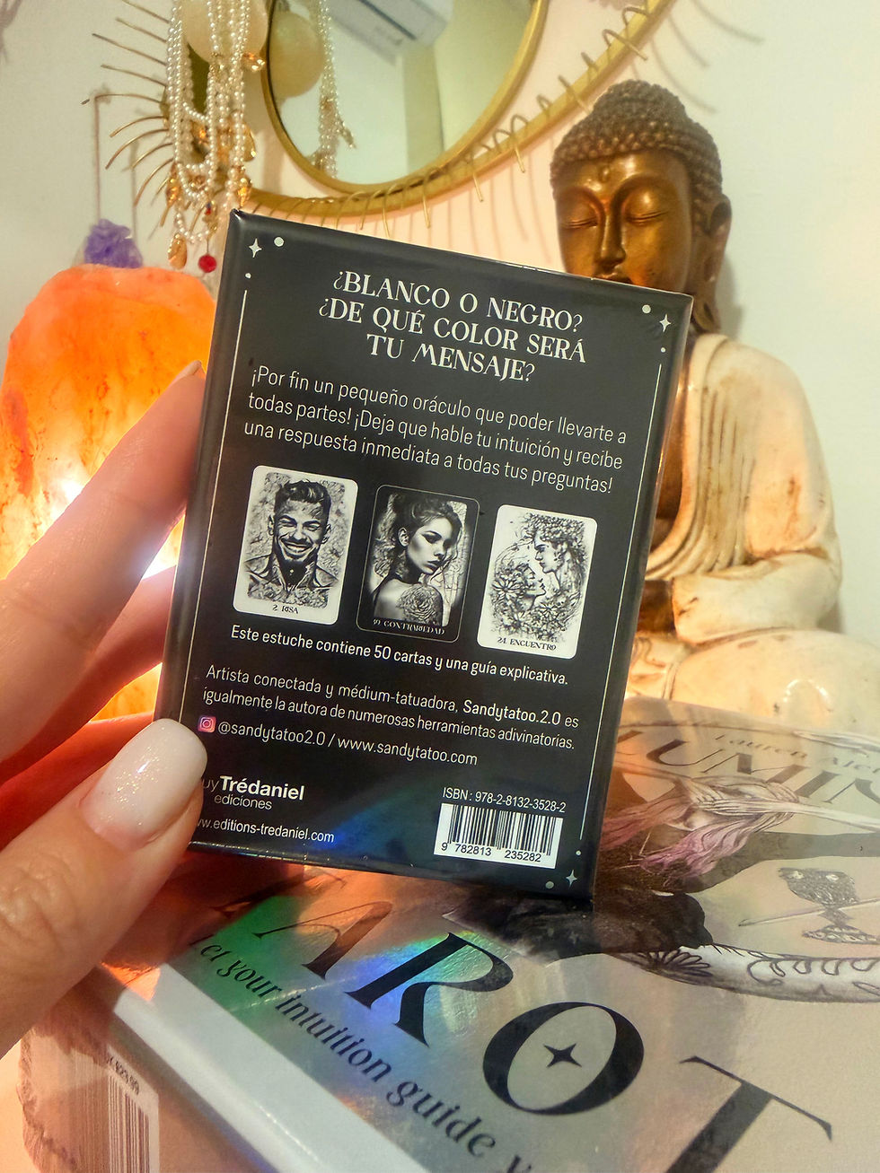 El libro que acompaña esta baraja te permitirá interpretar los mensajes de sus 52 cartas, conocer todos los aspectos de tu viaje personal y descifrar el verdadero significado de tu vida y el sentido de todo lo que te sucede.